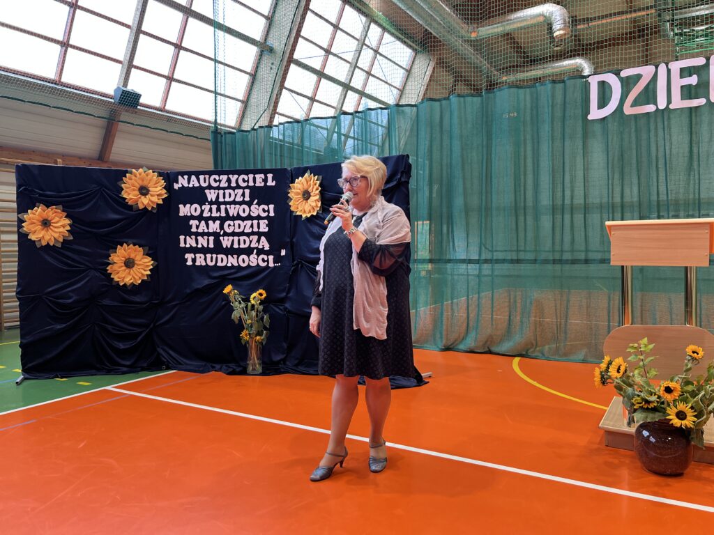 Pani Burmistrz podziękowała całej społeczności szkolnej za codzienną pracę i zaangażowanie, a także podkreśliła wkład nauczycieli w kształtowanie i wychowanie młodego pokolenia.